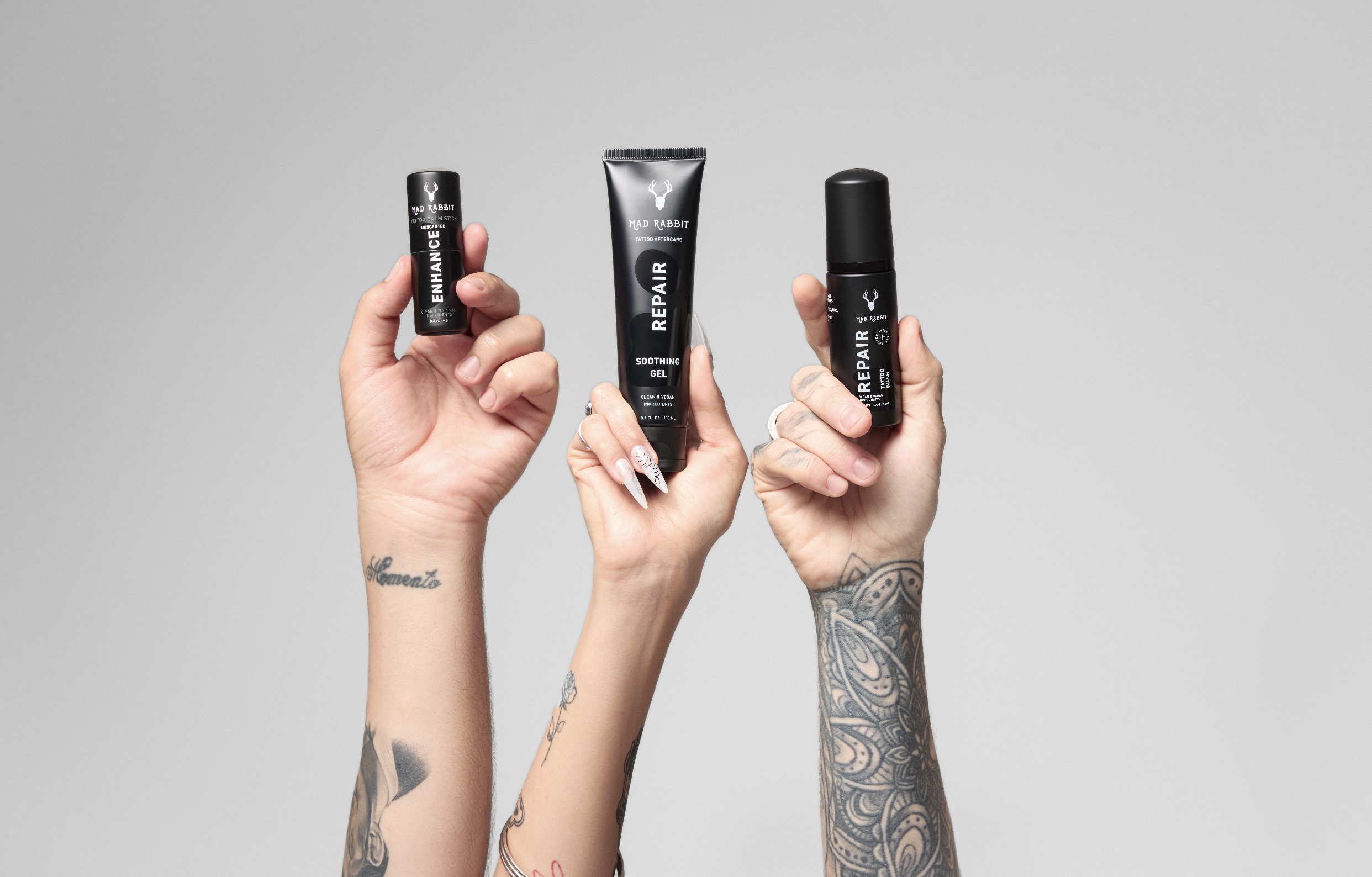 Mad Rabbit is a modern tattoo-care // lifestyle brand focused on redefining how people care for their permanent art. The brand delivers a fully integrated skincare system spanning pre-care, in-studio artist support, aftercare, and everyday maintenance.